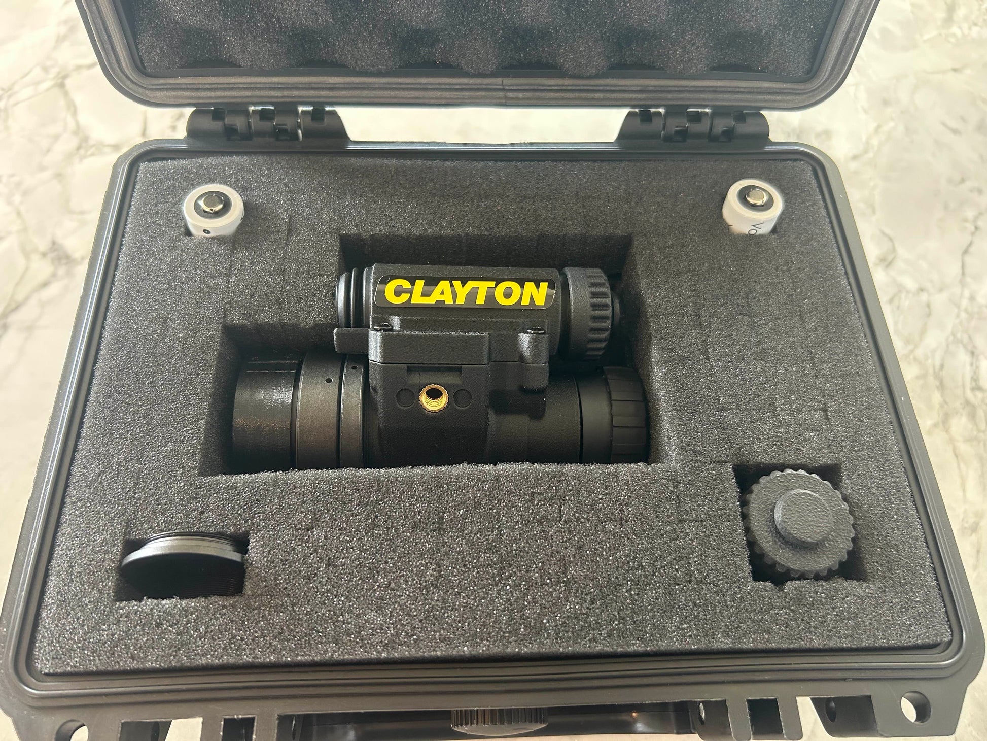 Kit includes all the trimmings: 2 batteries, lens cover, eye-cup retaining ring, spare battery cap and hard case for transport and storage